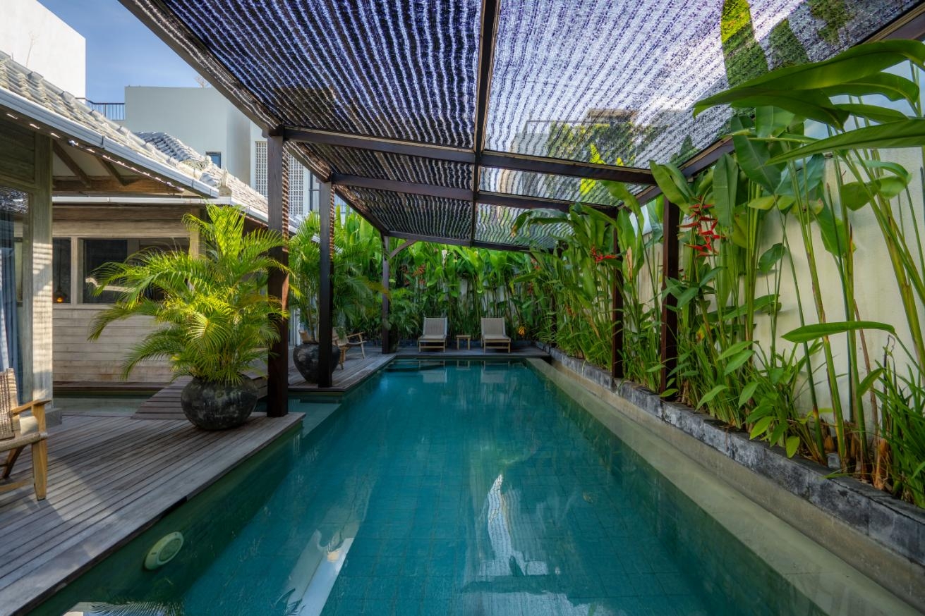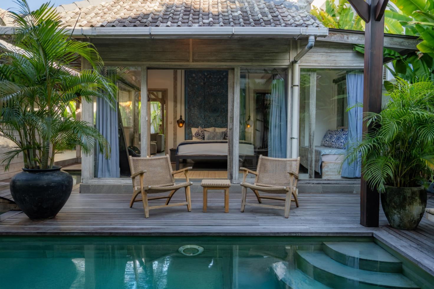 • Private pool bordered by tropical foliage & sun loungers for laid-back afternoons