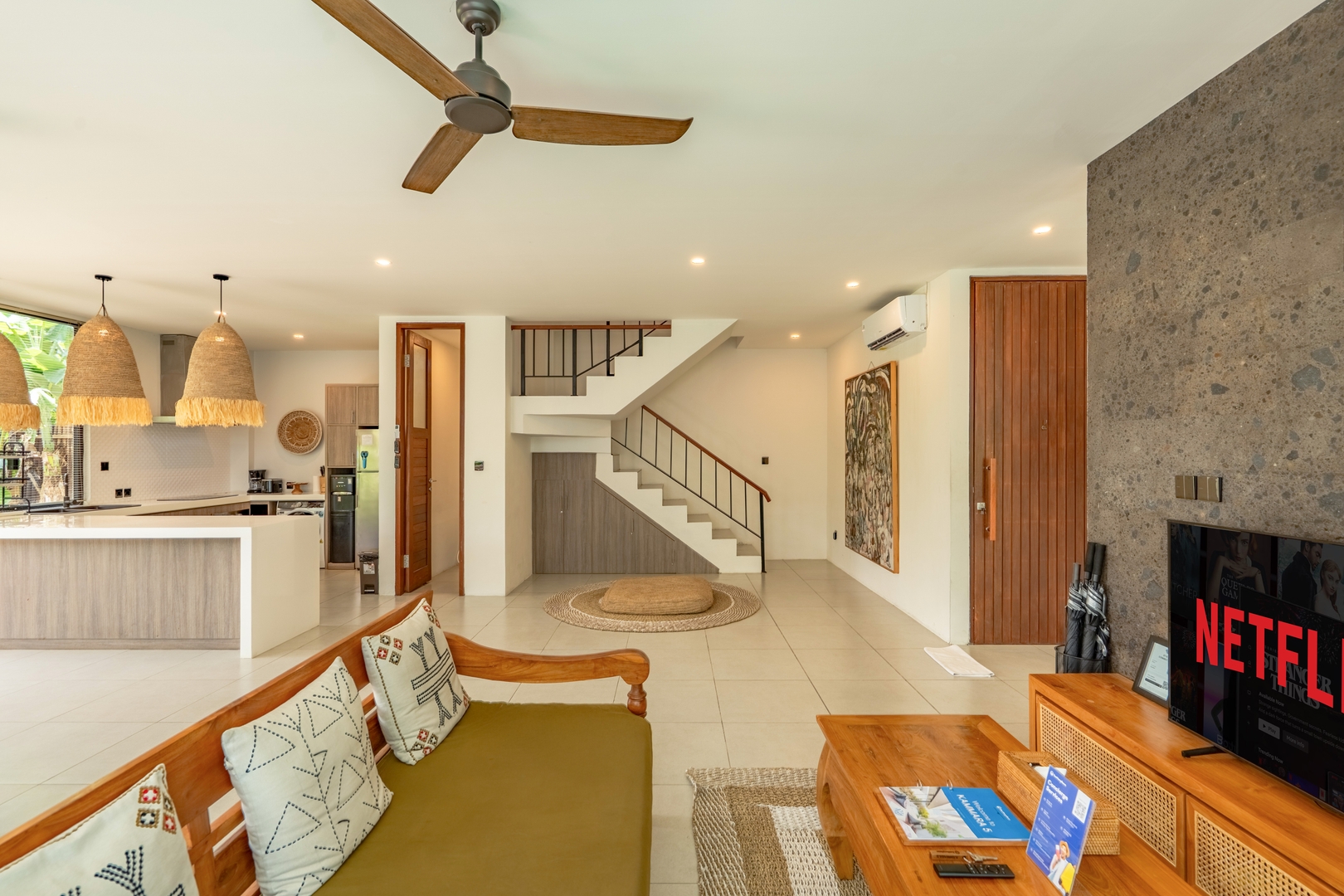 Kammara 5 captures the spirit of modern tropical living through its elegant blend of natural materials, open layouts, and refined detail. Floor-to-ceiling glass doors flood the villa with sunlight, connecting the sleek interiors to the pool and surrounding rice fields. Every corner has been thoughtfully designed for comfort — a place to rest, create, and connect in style.