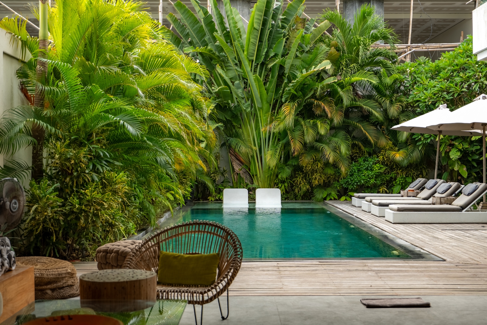 • Long private swimming pool surrounded by tropical greenery & sun loungers — ideal for sun-soaked days or evening cocktails