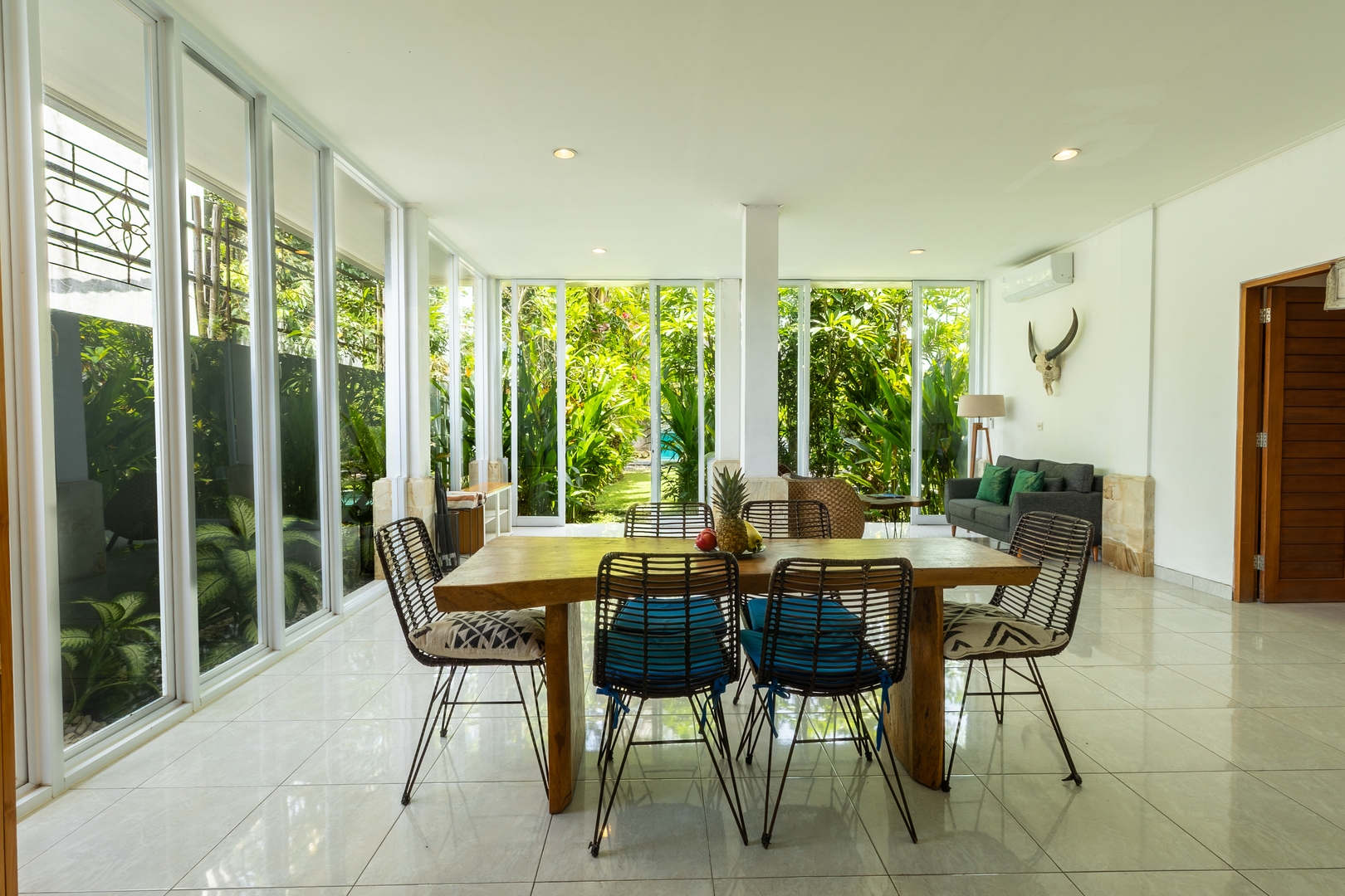 Ideally located near Canggu’s vibrant café scene, beach clubs, and renowned surf breaks, this three-bedroom villa brings together tropical warmth and modern sophistication. Light-filled interiors, leafy surroundings, and open living spaces form a calming retreat suited for families, friends, or groups wanting an elevated Bali stay.