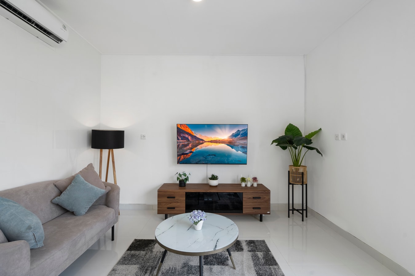 • Bright open-plan living room with modern furnishings & seamless indoor-outdoor flow
