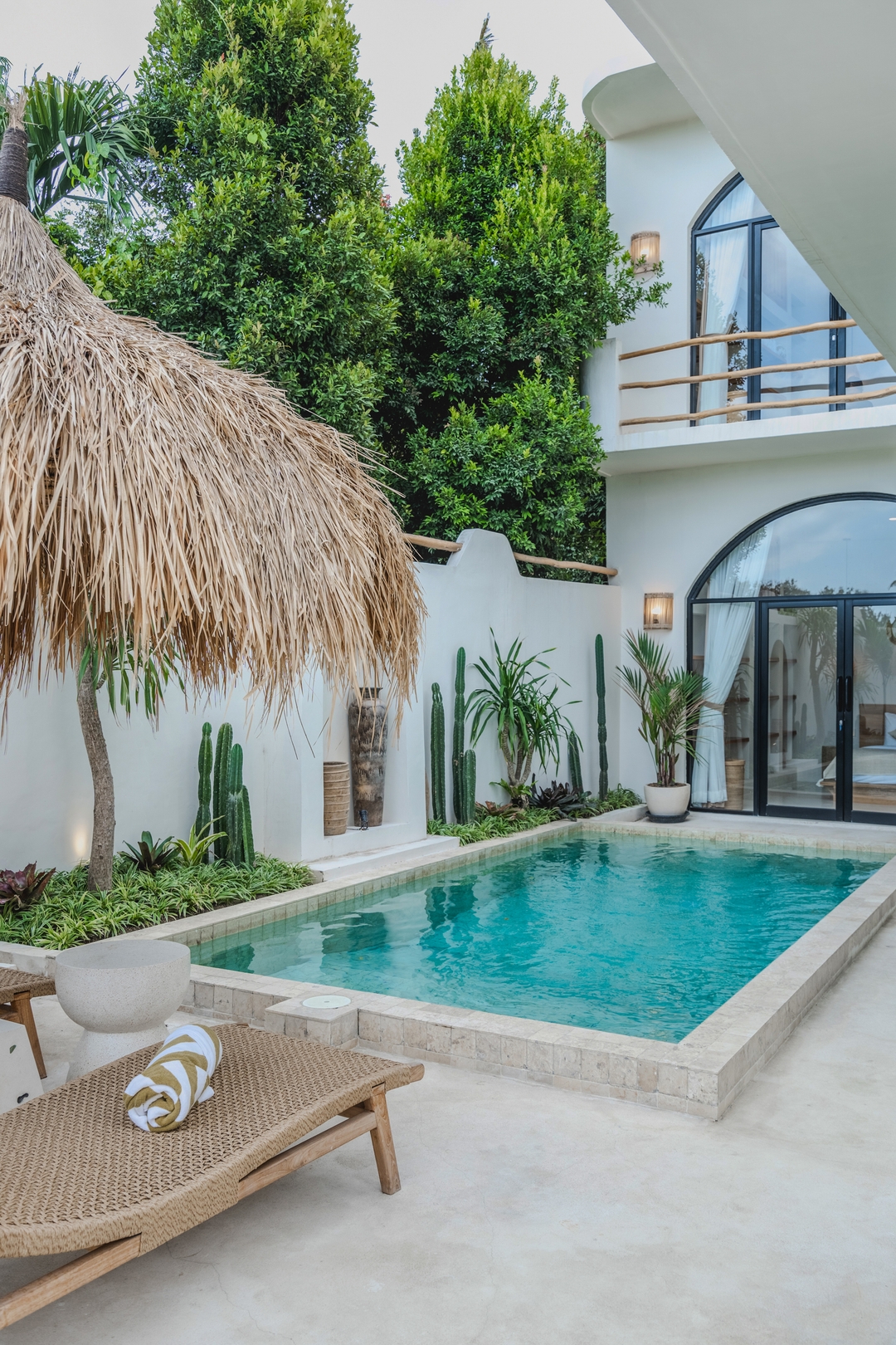 Luana Villa blends modern tropical design with a hint of elegance, creating the perfect space for stylish island living in Canggu. Framed by lush greenery, its thoughtful details — from arch windows to rooftop seating — set the stage for both connection and relaxation.