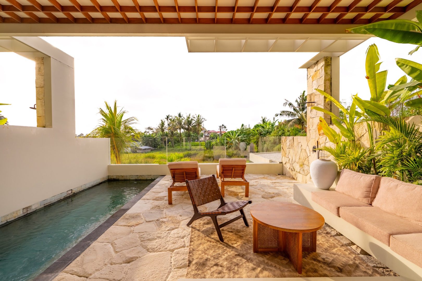 Discover Sore Tumbak Bayuh Mini Villa, a refined 1BR luxury escape in the peaceful area of Tumbak Bayuh, Canggu, designed by acclaimed architect Ade Bali. Surrounded by lush rice fields, it offers a private pool and sunken lounge — an elegant retreat for seeking comfort, seclusion & elevated island living near Canggu’s lively scene. • Private pool, sunken lounge & calming paddy outlooks • 8 mins to Pererenan Beach for surfing & sunset views • Fast Wi-Fi, 24/7 guest support & concierge services