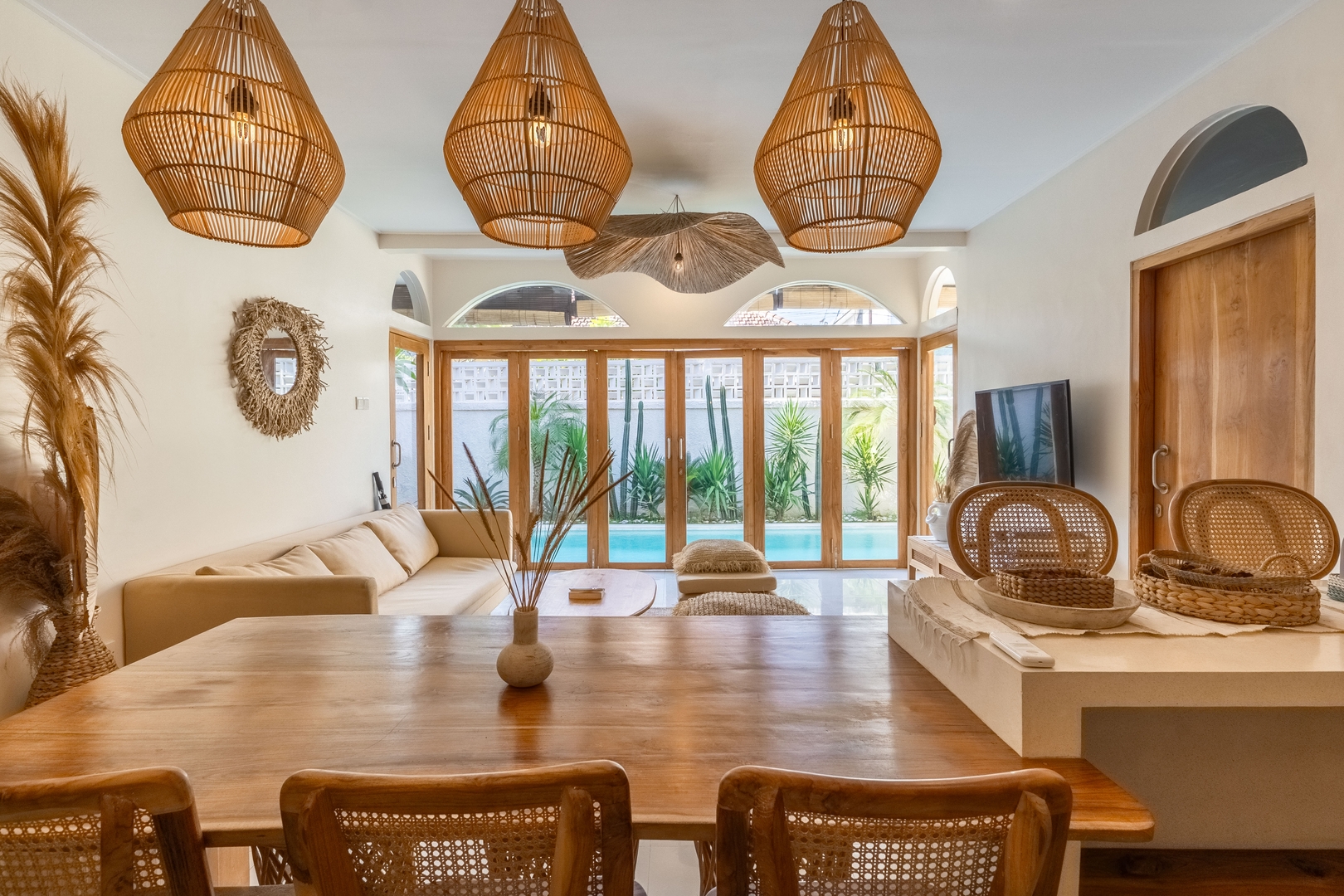 Wayang Villa blends modern Balinese architecture with natural textures and warm tones, creating a serene yet stylish home base. Surrounded by tropical greenery, its open layout and poolside connection invite guests to unwind in complete privacy and comfort.
