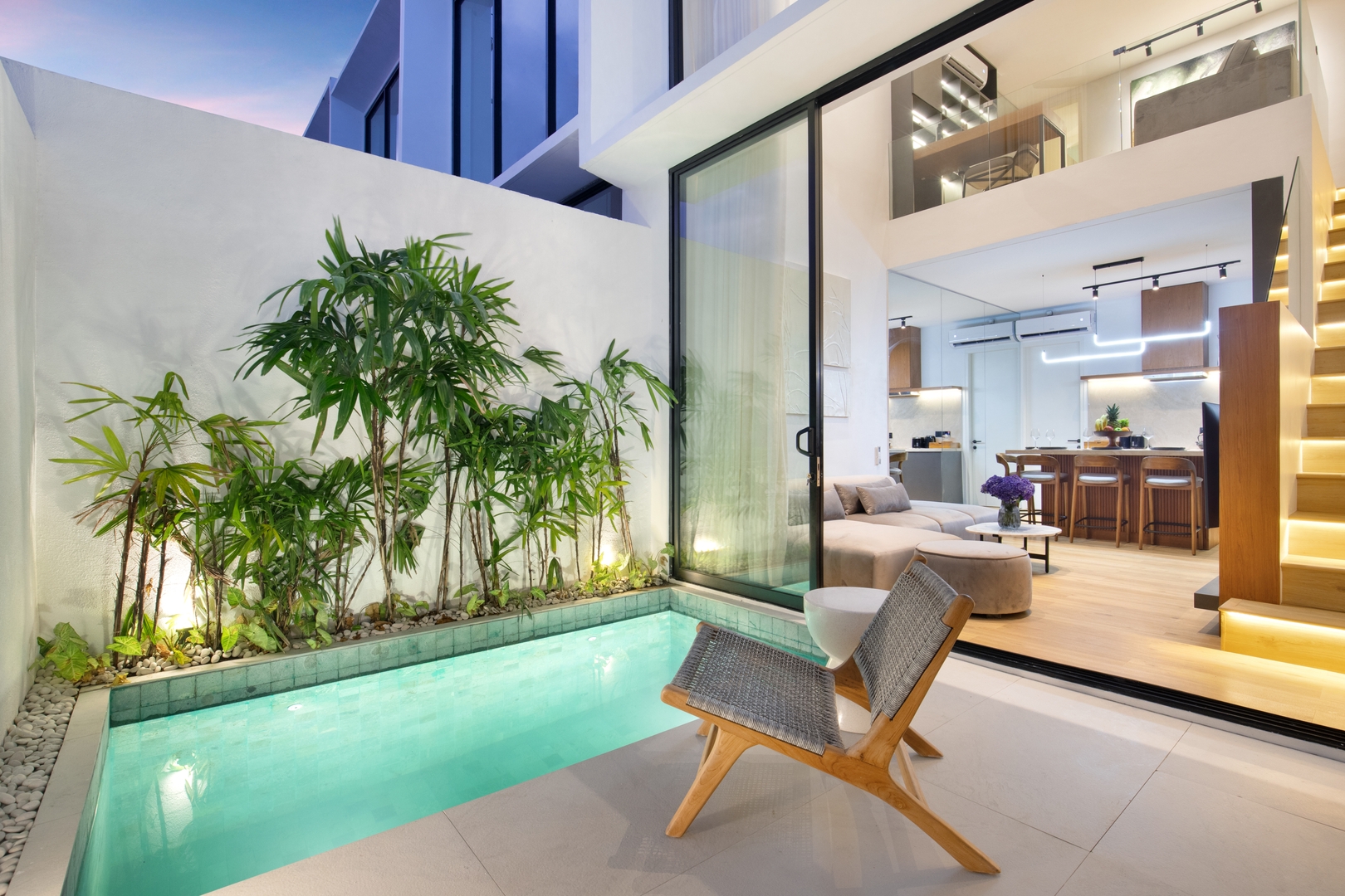 The Oasis Villa brings modern minimalism to life in Bali, combining sleek design with smart technology. Thoughtfully built with simplicity and elegance in mind, this villa blends contemporary architecture with functional, stylish living spaces. Designed for a balanced lifestyle, it features a dedicated workspace that offers a calm, productive environment—perfectly integrated into the villa’s clean, modern layout.