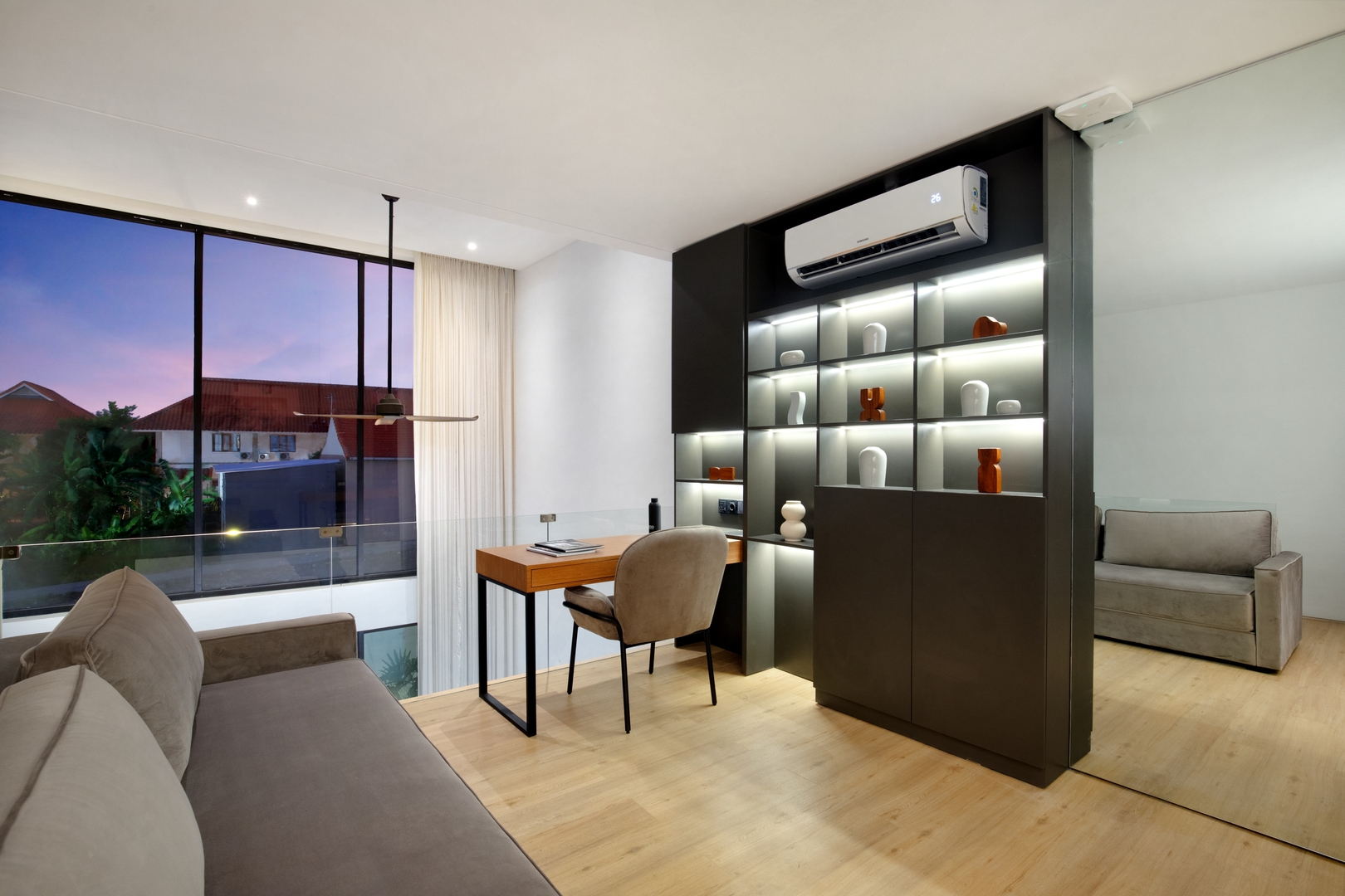 Workspace (Second Floor): Dedicated desk & chair + sofa for relaxation