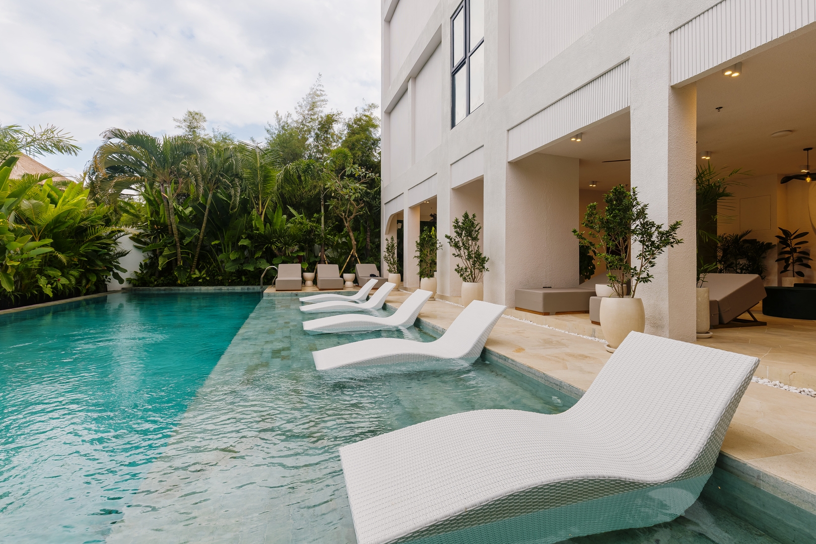 Stay at Sunny Muse, a stylish suite in the heart of Canggu. This modern retreat offers sleek interiors, a private outdoor bathtub surrounded by lush greenery—perfect for open-air unwinding, a shared pool and sauna for your relaxation. • 350m walk to the sands of Nelayan Beach • Close to beach clubs, Berawa, and Canggu beaches • Around the corner from Revolver, Fold, Serenity Yoga, and Superfood Fast Wi-Fi and 24/7 guest suppport.