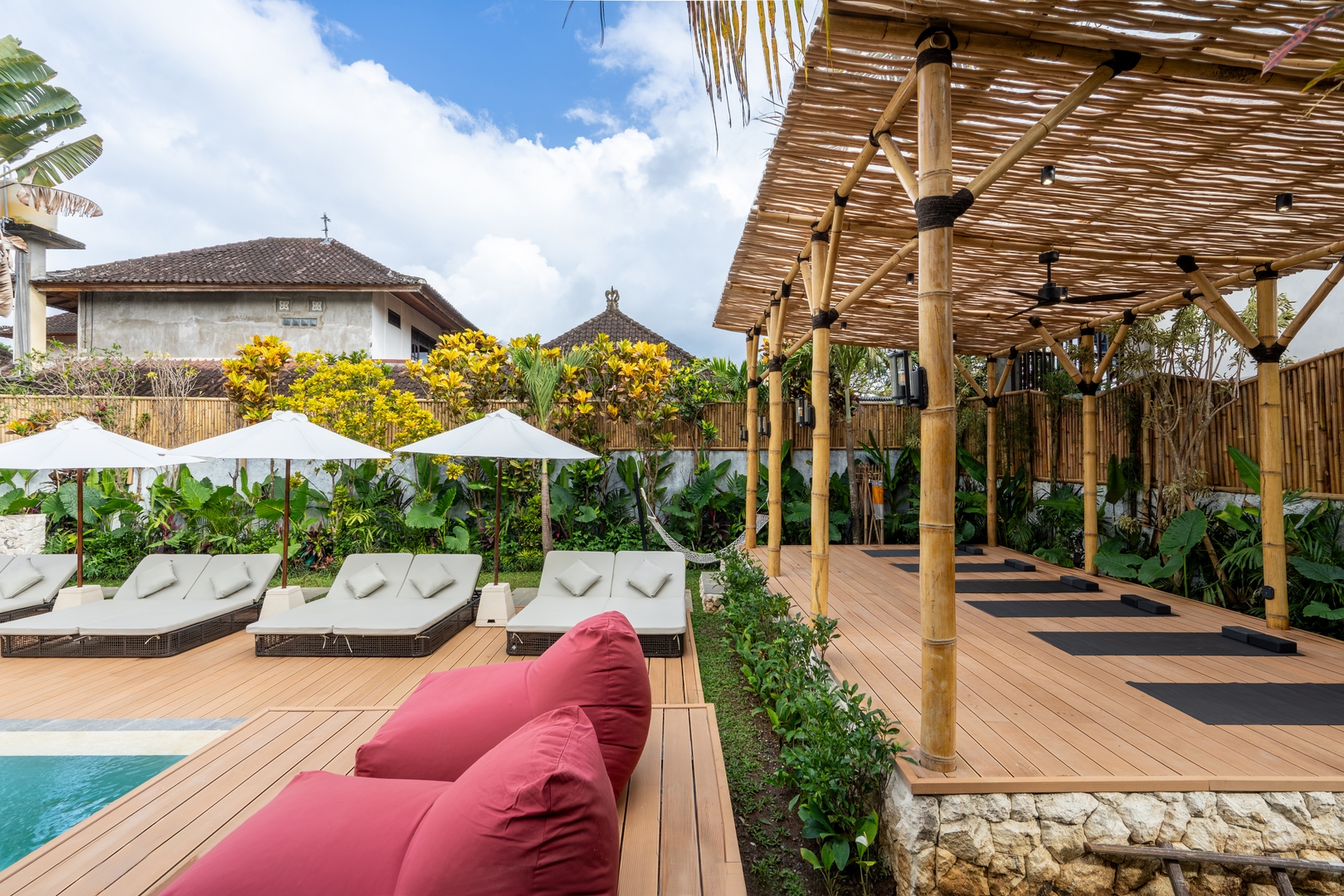 • Landscaped shared pool framed by plants — refreshing after temple visits or exploring Ubud’s markets