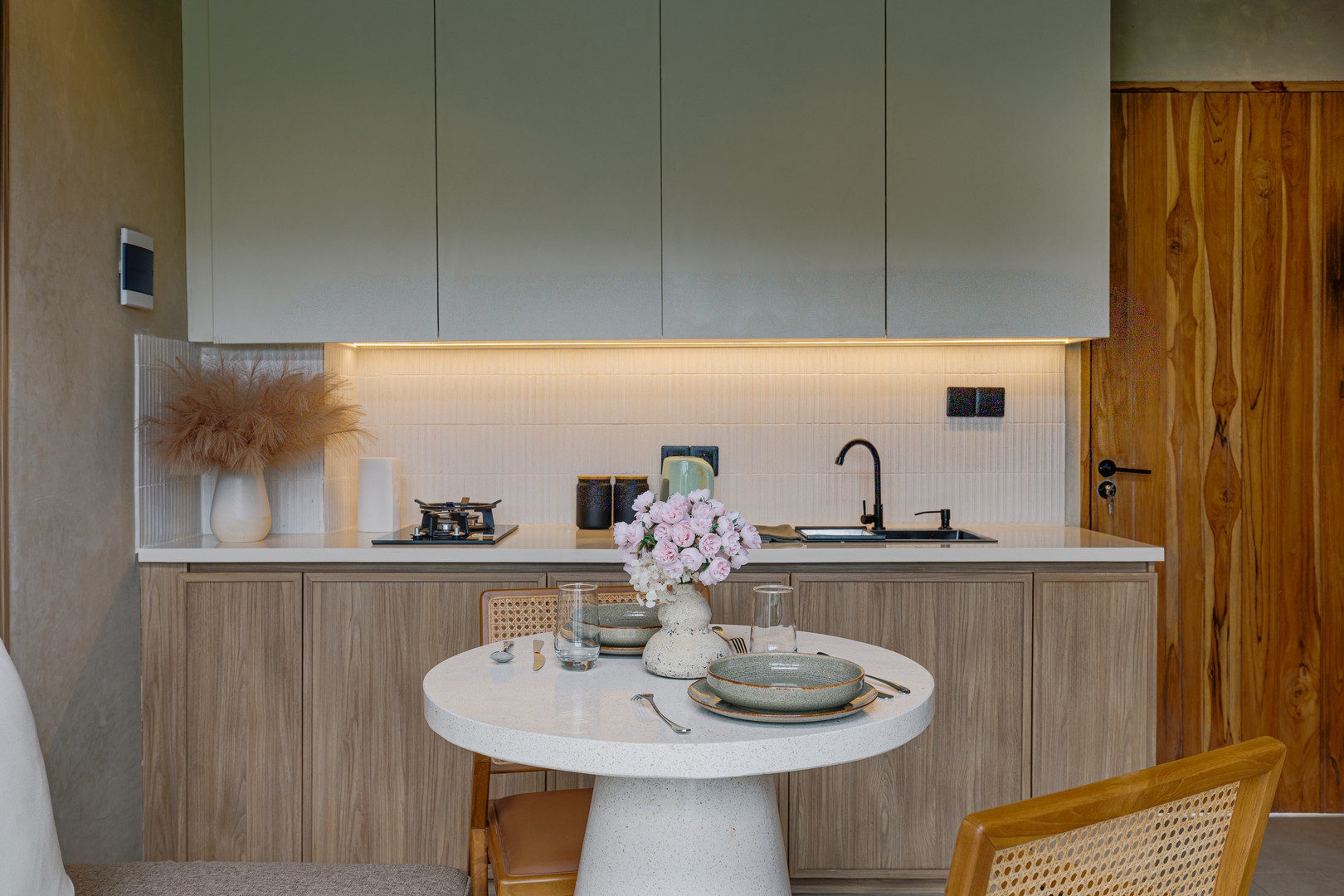 This stylish two-level loft combines clean modern aesthetics with the warmth of tropical views. It’s a perfect hideaway for couples or remote workers who want to be close to the energy of Canggu while enjoying rice field scenery.