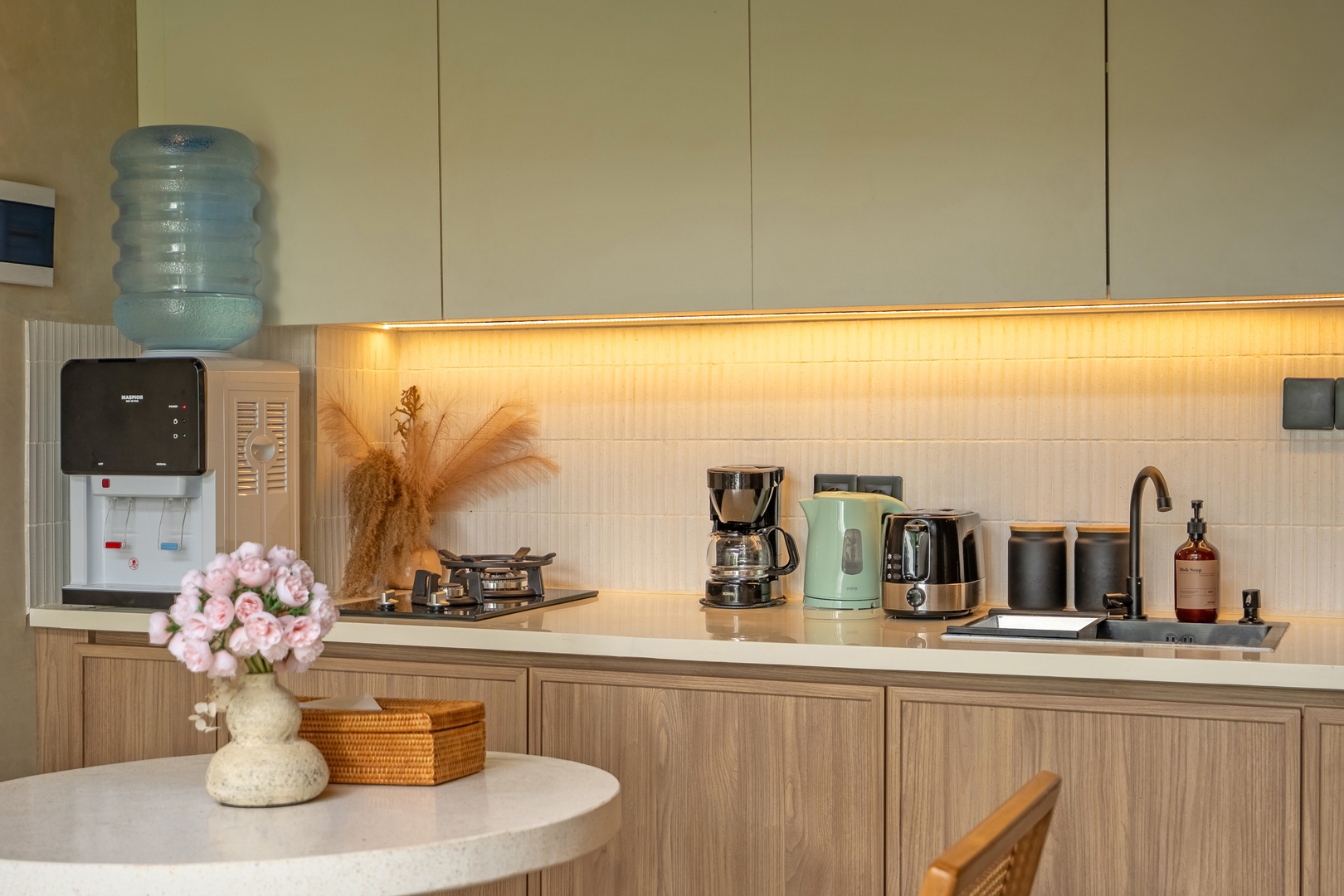 • Compact kitchen with essentials — ideal for light meals or morning coffee
