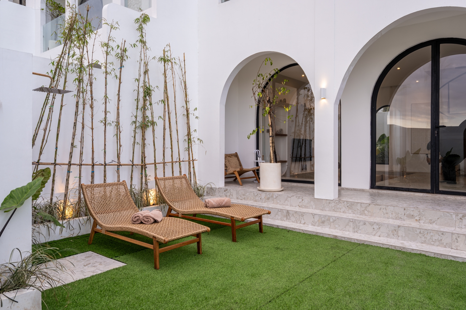 • Private pool bordered by greenery, complete with sun loungers and outdoor rainshower