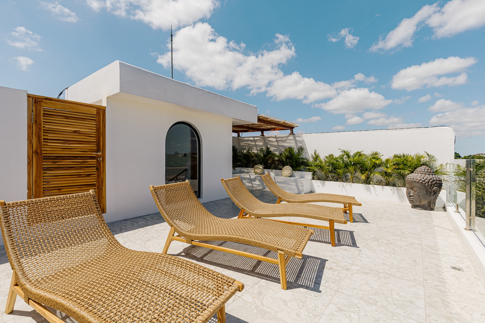 · Rooftop terrace with loungers and shaded seating — an inviting spot for sunset drinks, evening conversations, or stargazing under the Bali sky