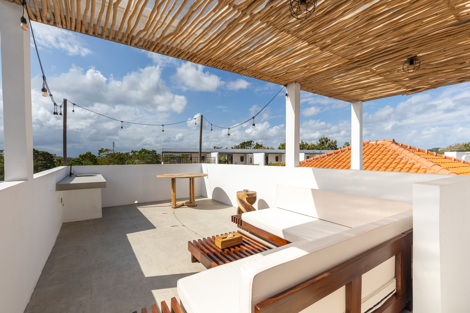 • Rooftop lounge with stylish half-shaded seating, greenery views & Uluwatu’s coastal energy — ideal for evening gatherings or starlit moments