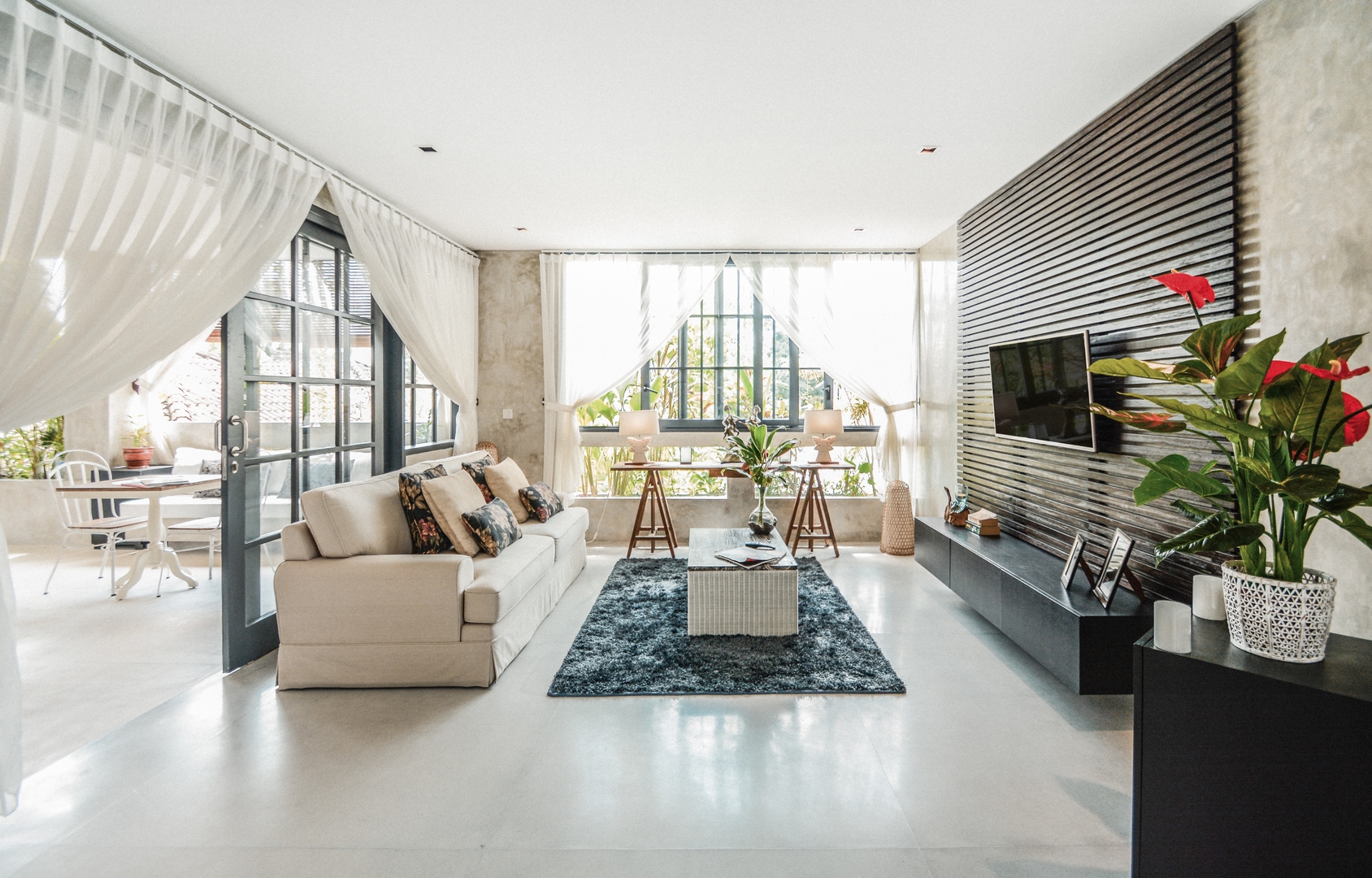 Step into Duur Apartment, a contemporary 2-bedroom apartment designed for both comfort and style in Kerobokan. Each bedroom is furnished with a king-size bed, en-suite bathroom, and air conditioning, ensuring a restful stay after your Bali adventures. Oversized glass doors bring in natural light and create a seamless flow between indoor and semi-outdoor areas, making it an inviting place to unwind, work, or gather with friends.