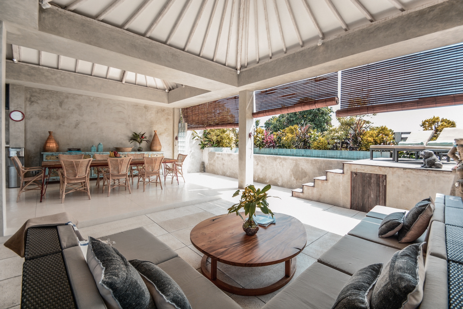 • Open concept living with oversized glass doors, plush seating & garden/pool views overlooking Seminyak’s lively scene