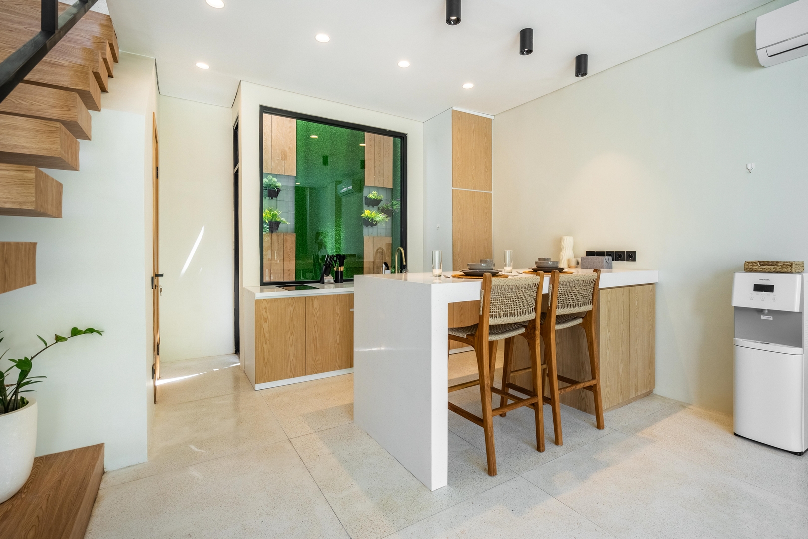 Thoughtfully built for guests who value both practicality and aesthetic comfort, Edem Villa embraces modern tropical living with bright interiors, natural-toned finishes, and a smooth indoor–outdoor connection. Sunlight filters through wide windows, enhancing natural materials and creating a breezy living atmosphere. The open arrangement ties all areas together — supporting slow mornings, focused work hours, or restful evenings after a Melasti adventure.