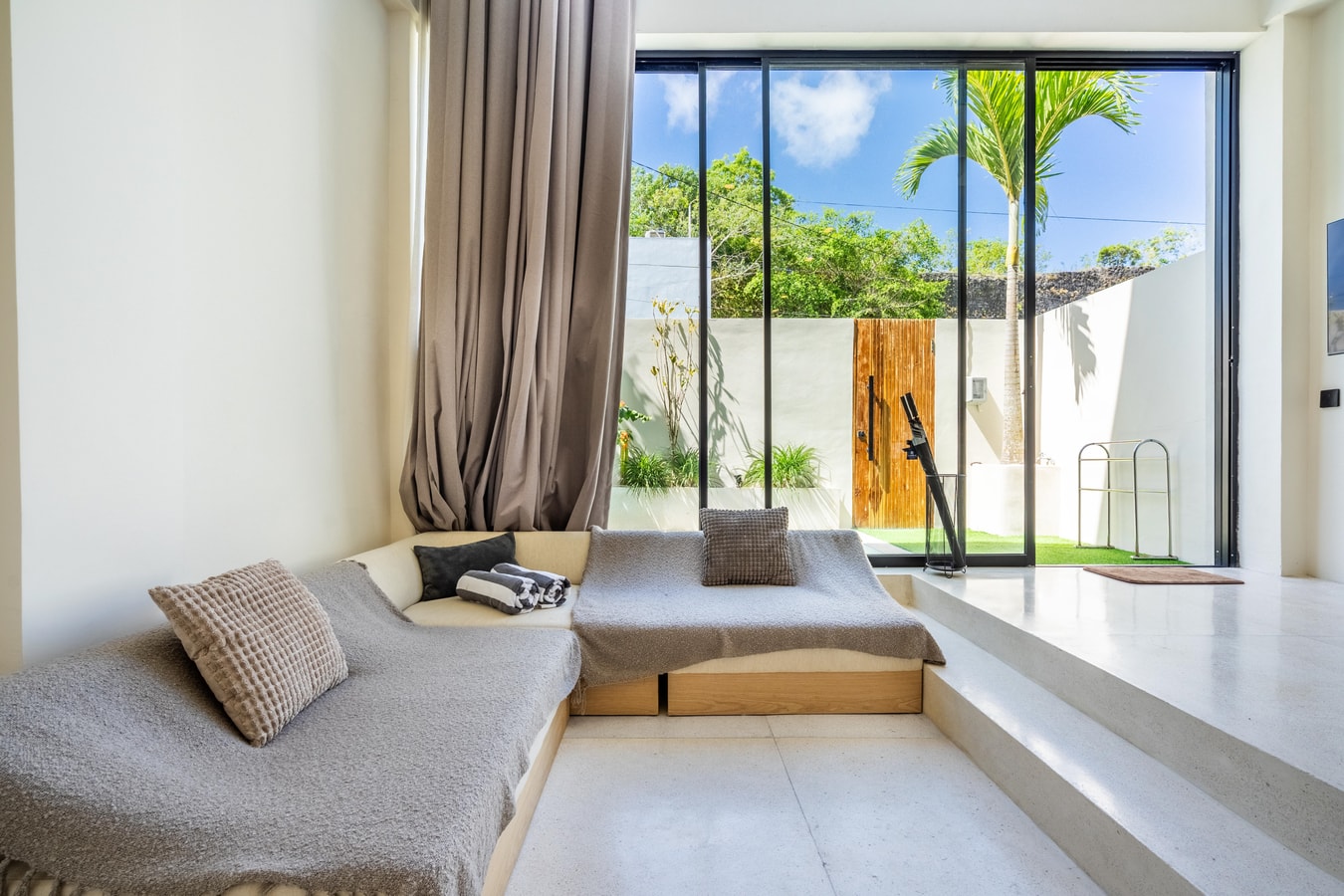 Designed for ease and comfort, Edem Villa embraces natural light, soft tones, and an uncluttered flow. The layout maximizes brightness and connectivity — each space feels open and well-linked to the outdoors. Wide windows frame the pool and garden, while subtle natural details bring a gentle island feeling inside. Whether returning from a beach session or easing into a slow day at home, the villa offers a space that feels balanced and intuitive.