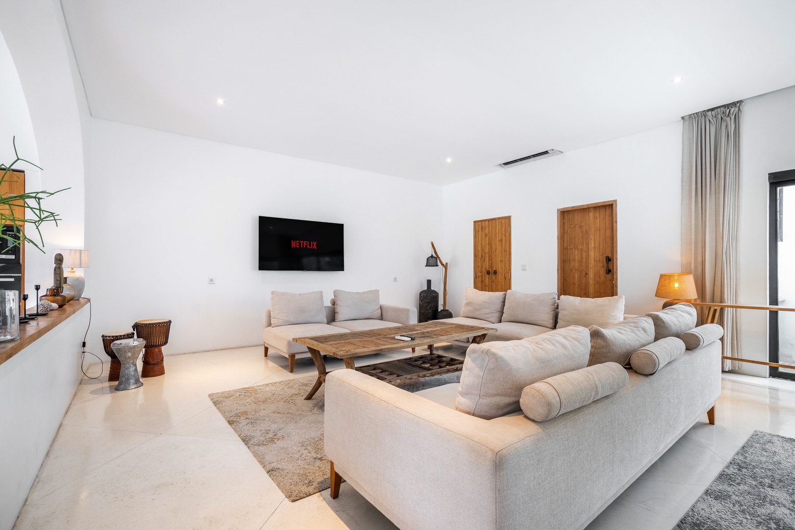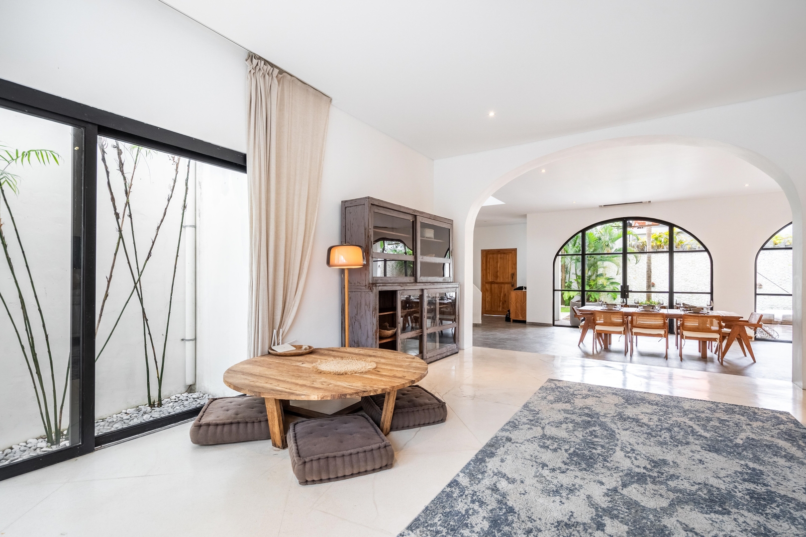 • Four spacious bedrooms with minimalist design, large windows, and private balconies overlooking the pool and garden