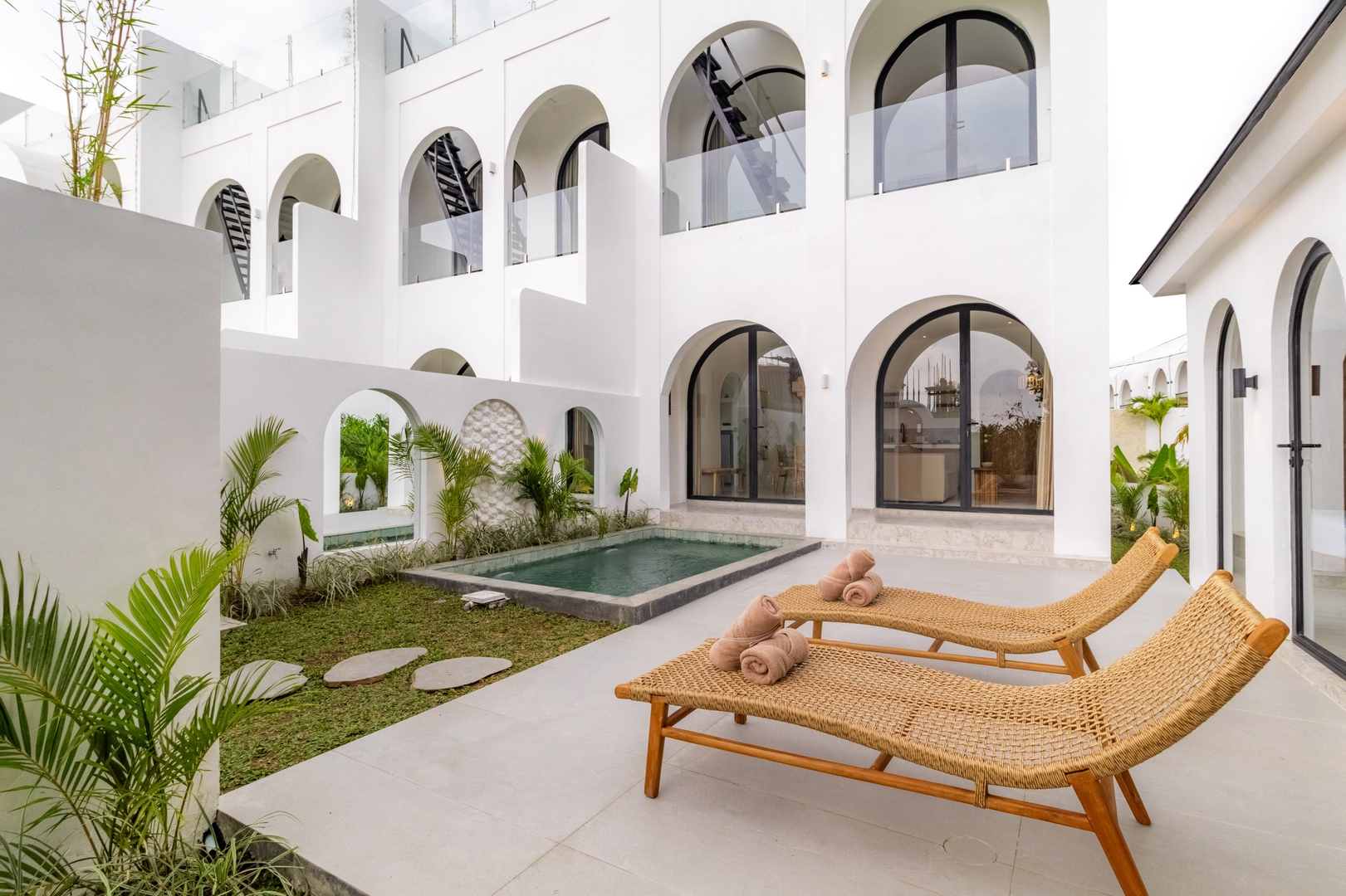 Unu 12 Villa blends Mediterranean design with tropical comfort, ideal for friends, couples traveling together, or remote-working guests who value both shared spaces and privacy. With one bedroom in the main villa and the second bedroom in a separate building, it offers a layout perfect for those seeking personal space without sacrificing connection to the communal areas.