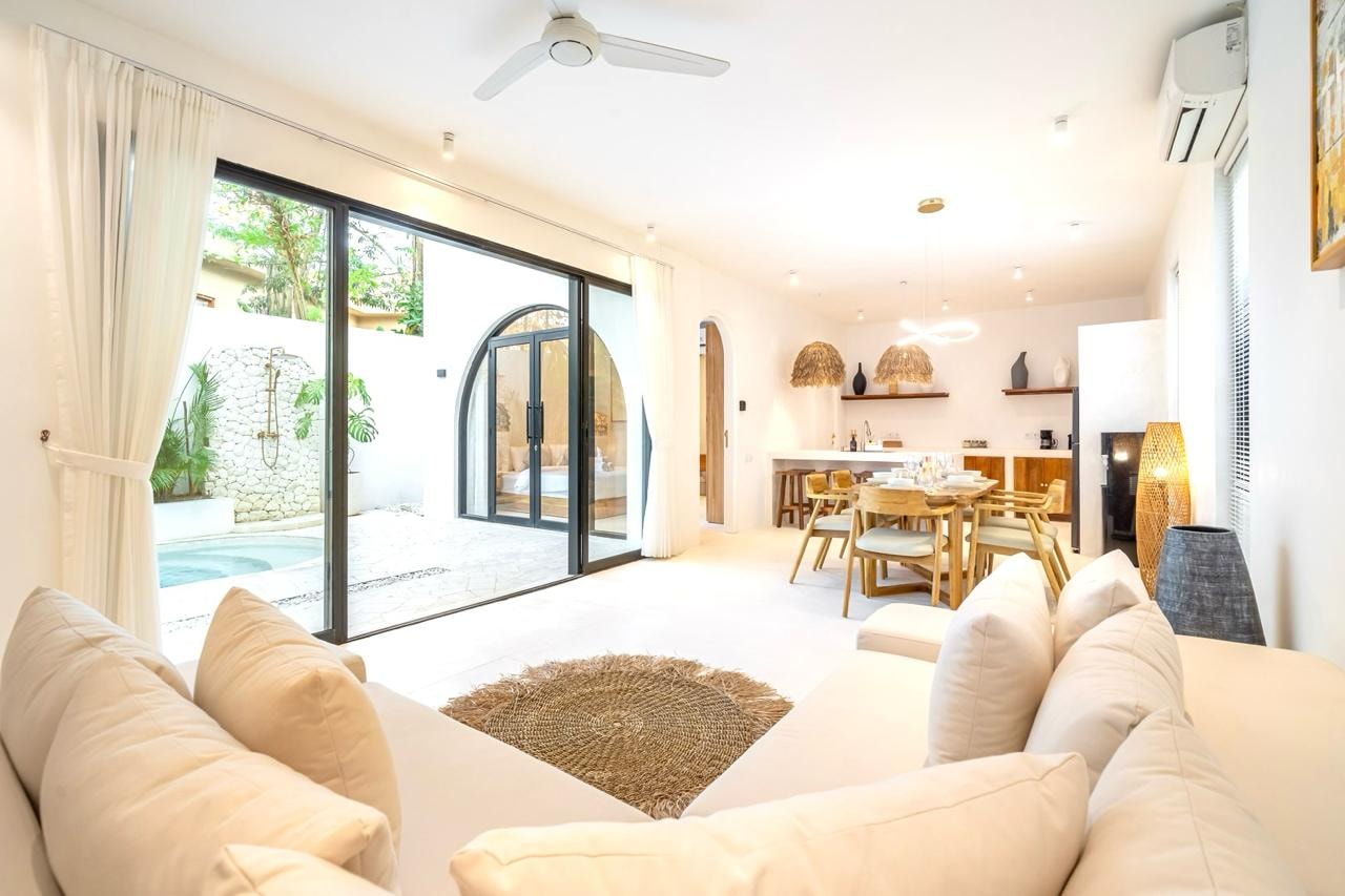 Casa Myla is thoughtfully crafted to embody elevated tropical living. Clean architectural lines, warm natural materials, and generous openings create a bright and breathable atmosphere throughout the villa. Large sliding glass doors seamlessly connect the interiors to the pool and garden, allowing sunlight and fresh air to flow freely while maintaining a sense of privacy and exclusivity.